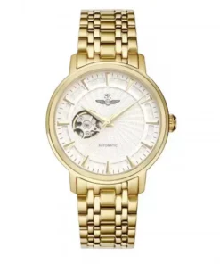 Đồng hồ nam SRWATCH SG8873.1402 nổi bật với mặt số tròn màu trắng có vân xoáy vào tâm, mặt kính dưới để lộ một phần của máy cơ bên trong tạo nên vẻ nam tính mạnh mẽ, kim chỉ và khung viền máy cùng quai đeo đờ mi mạ vàng sang trọng.