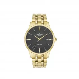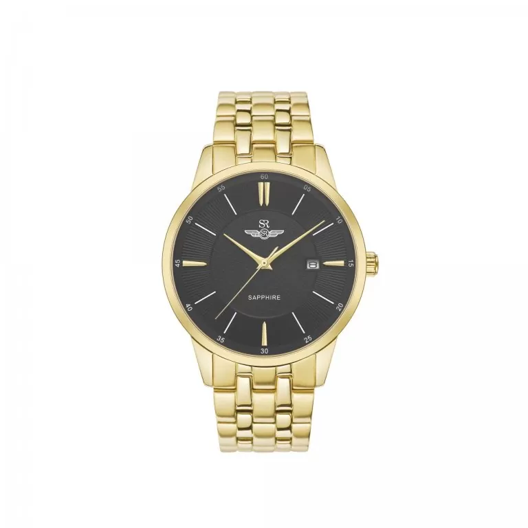 Đồng hồ Nam SG80061.1401CF đen thiết kế sang trọng, cá tính với vỏ máy và dây đeo bằng thép không gỉ mạ vàng công nghệ cao chống bong tróc lớp xi mạ, các cọc số chính và kim chỉ mạ vàng nổi bật trên nền số đen, mặt kính sapphire chống trầy, có 1 lịch ngày đi kèm.