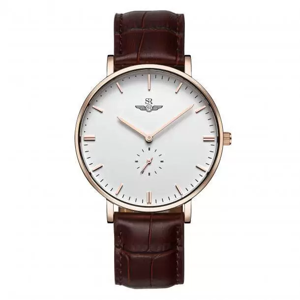Đồng hồ nam SRWATCH SG5771.1402 có viền kim loại mạ vàng bo trong mặt đồng hồ, dây đeo bằng chất liệu da cao cấp chống thấm với màu nâu sang trọng mạnh mẽ đem lại phong cách lịch lãm cho phái mạnh kể cả trong công việc, diện tiệc, đi chơi hay hẹn hò đều thích hợp.