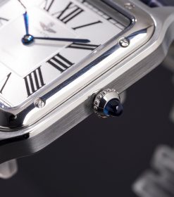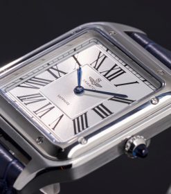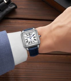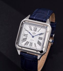 Đồng hồ nam SRWATCH SG7007.4103GM mặt vuông, vỏ trắng, số La Mã và 2 kim màu xanh nổi bật trên nền trắng. Mặt đồng hồ có vỏ thép không gỉ vượt thời gian, kết hợp với dây đeo bằng da màu xanh cao cấp. Kính sapphire chống trầy xước và tiêu chuẩn chống nước 5ATM mang đến sự an tâm cho người dùng.