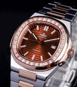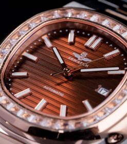Đồng hồ nam automatic SRWATCH SG88806.1205AT mặt oval,vỏ màu vàng hồng và dây demi được gia công tỉ mỉ từ thép không gỉ kết hợp mạ vàng bằng công nghệ PVD cao cấp,mặt đồng hồ màu nâu được bao quanh bởi những viên đá trắng càng làm tăng thêm vẻ nổi bật.Đồng hồ sở hữu mặt kính saphire chống trầy xước và khả năng chống nước tiêu chuẩn 5atm mang đến sự an tâm cho người dùng.