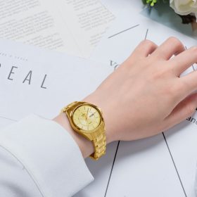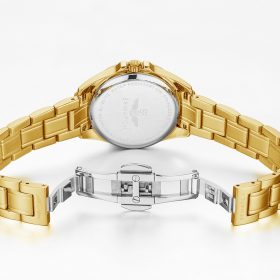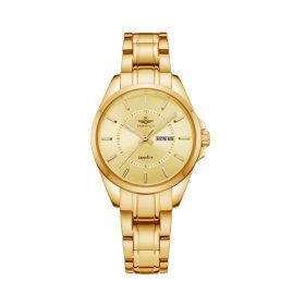 Đồng hồ nữ SRWATCH SL1901.1407TE với thiết kế mặt tròn, cùng với dây đeo kim loại, mang lối thiết kế hiện đại, sang trọng. Vỏ đồng hồ, dây đeo, và các cọc số được gia công tỉ mỉ từ thép không gỉ mạ vàng công nghệ PVD với độ hoàn thiện cao. Đồng hồ với 3 kim và cửa sổ hiện thị 2 lịch tạo thuận lợi khi sử dụng. Mặt kính sapphire cao cấp chống trầy cùng với tiêu chuẩn chống nước 5ATM đảm bảo mang đến sự an tâm cho người đeo.