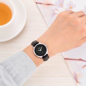 Đồng hồ nữ SRWATCH SL3004.4101CV đen đơn giản, mặt tròn, dây da đen cao cấp, vỏ máy, cọc số thanh mãnh, sắc nét, 2 kim, nút điều chỉnh giờ đều bằng thép không gỉ được mạ sáng bóng nổi bật trên nền đen tăng phần lịch lãm cho người đeo, mặt kính đồng hồbằng sapphire cao cấp chống trầy, chống nước 5 ATM.