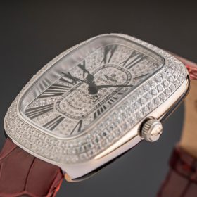 Đồng hồ nữ SL5009.4502BL thiết kế sang trọng dành cho phái đẹp với vỏ máy bằng chất liệu thép không gỉ, có các cọc chữ số la mã xoay vòng theo hình dáng vỏ ngoài. Mặt và vỏ đồng hồ được đính đá vô cùng tinh xảo, tạo hiệu ứng ánh sáng lấp lánh với ánh sắc cầu vồng mang lại sự sang trọng cho người đeo. Thân đồng hồ với góc cong độc đáo tạo sự thoả mái và tự tin cho phái đẹp khi đeo.  Mặt đồng hồ được bảo vệ bởi mặt kính sapphire cao cấp chống trầy, độ chống nước tiêu chuẩn 5ATM.