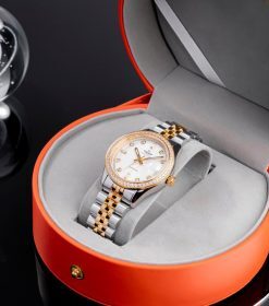 Đồng hồ nữ SRWATCH SL7004.1202 có thiết kế mặt tròn, thiết kế đồng nhất giữa vỏ và dây đeo thép màu demi không gỉ sự liền mạch của kim loại, mang đến cho người dùng phong cách mạnh mẽ. Các số và kim nổi bật, hài hòa trên mặt đồng hồ. Cọc số được đính đá sang trọng. Mặt kính sapphire chống xước cao cấp cùng chuẩn chống nước 5ATM tạo sự an tâm cho người dùng. Đồng hồ kèm chức năng lịch ngày tiện dụng.
